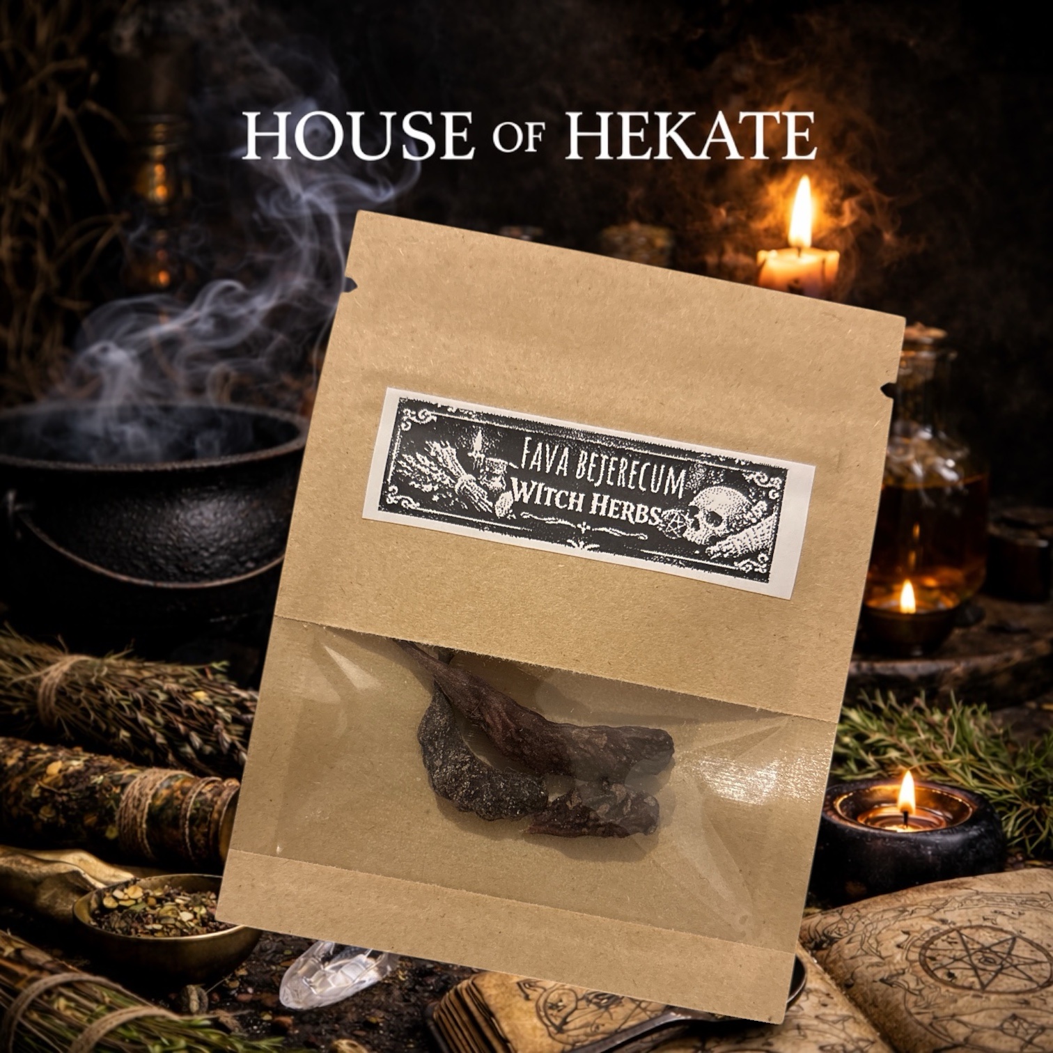 Fava Bejerecum er en traditionel magisk bønne, anvendt i folk magic, heksearbejde og rituelle praksisser gennem generationer. Den forbindes især med beskyttelse, held, manifestation og spirituel styrke og bruges ofte som et fysisk fokuspunkt i ritualer og spells.