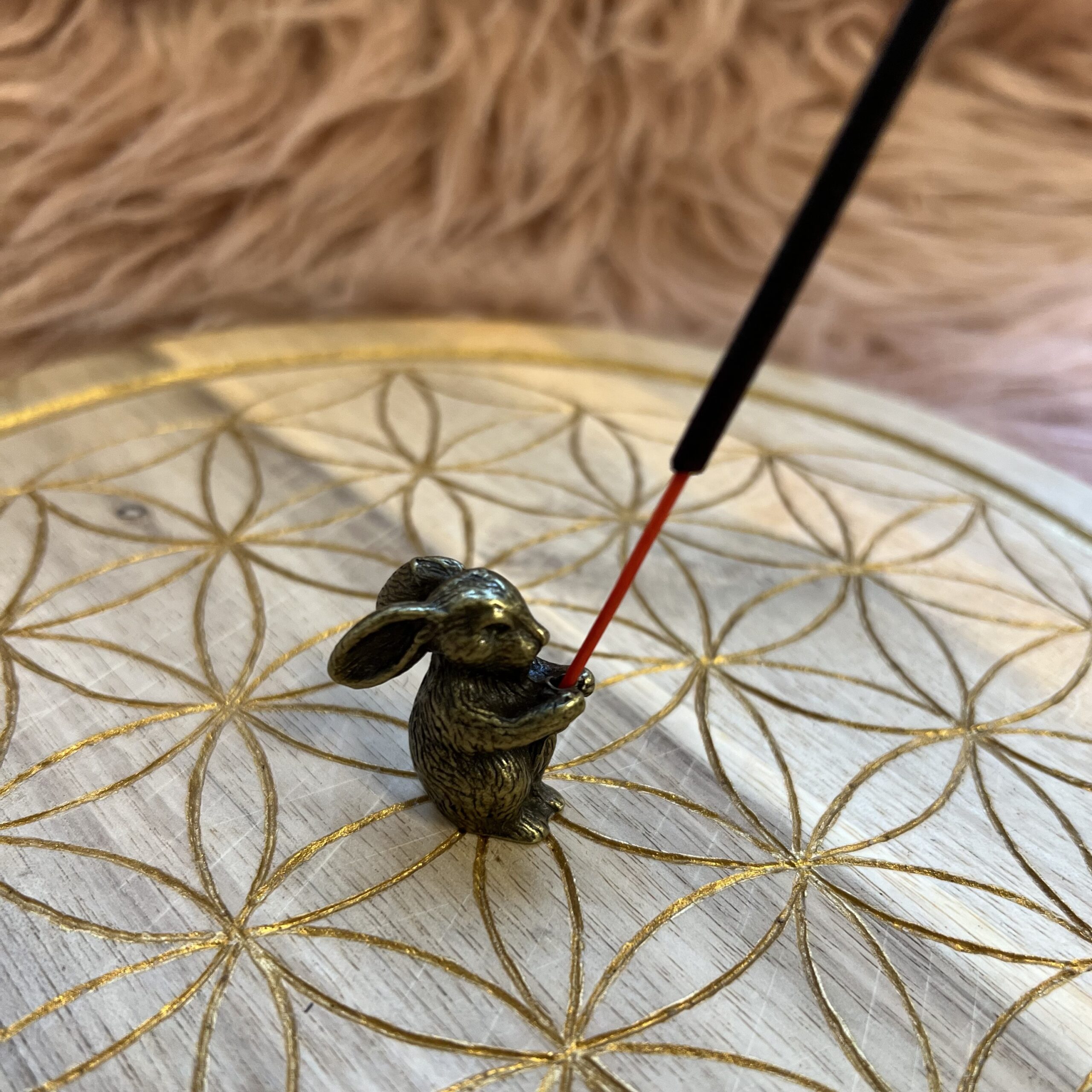 Denne smukke røgelsesholder med en detaljeret hare bringer en dyb symbolik og æstetik til dit alter eller hjem. Haren er et kraftfuldt symbol på intuition, transformation og månemagi, hvilket gør denne holder perfekt til dine spirituelle praksisser.