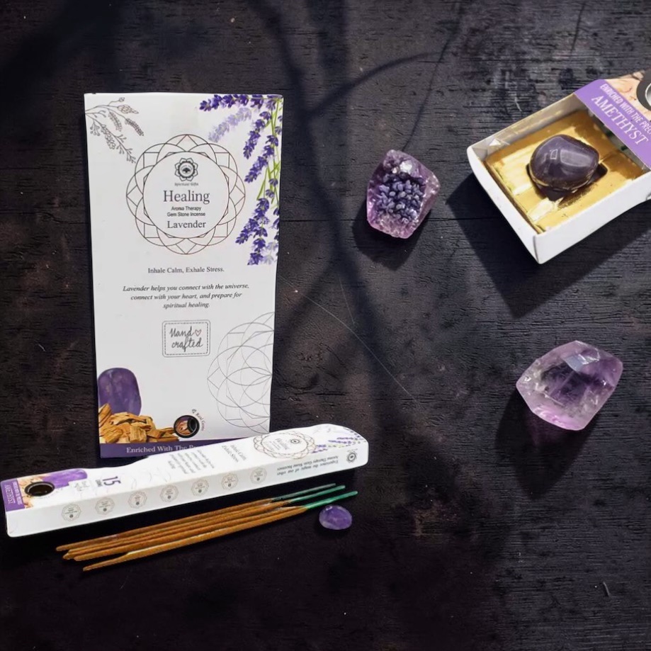 Skab en blid og helende atmosfære med disse Healing røgelsespinde med Lavendel, beriget med en smuk ametyst.