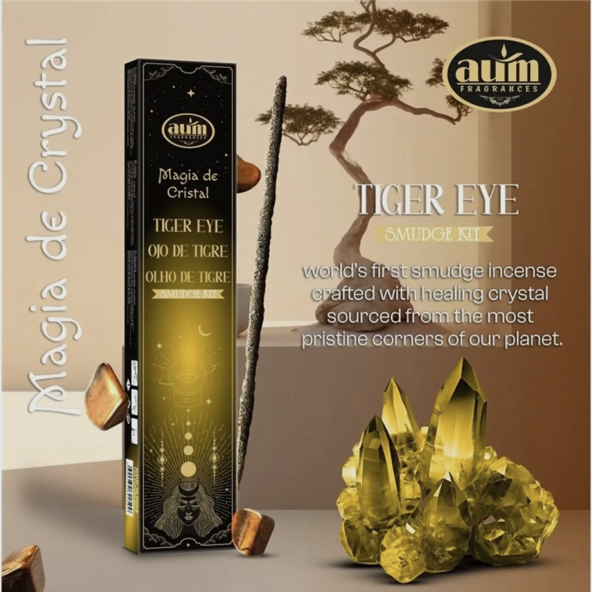 AUM Magia de Cristal – Tiger Eye Røgelse med Krystal