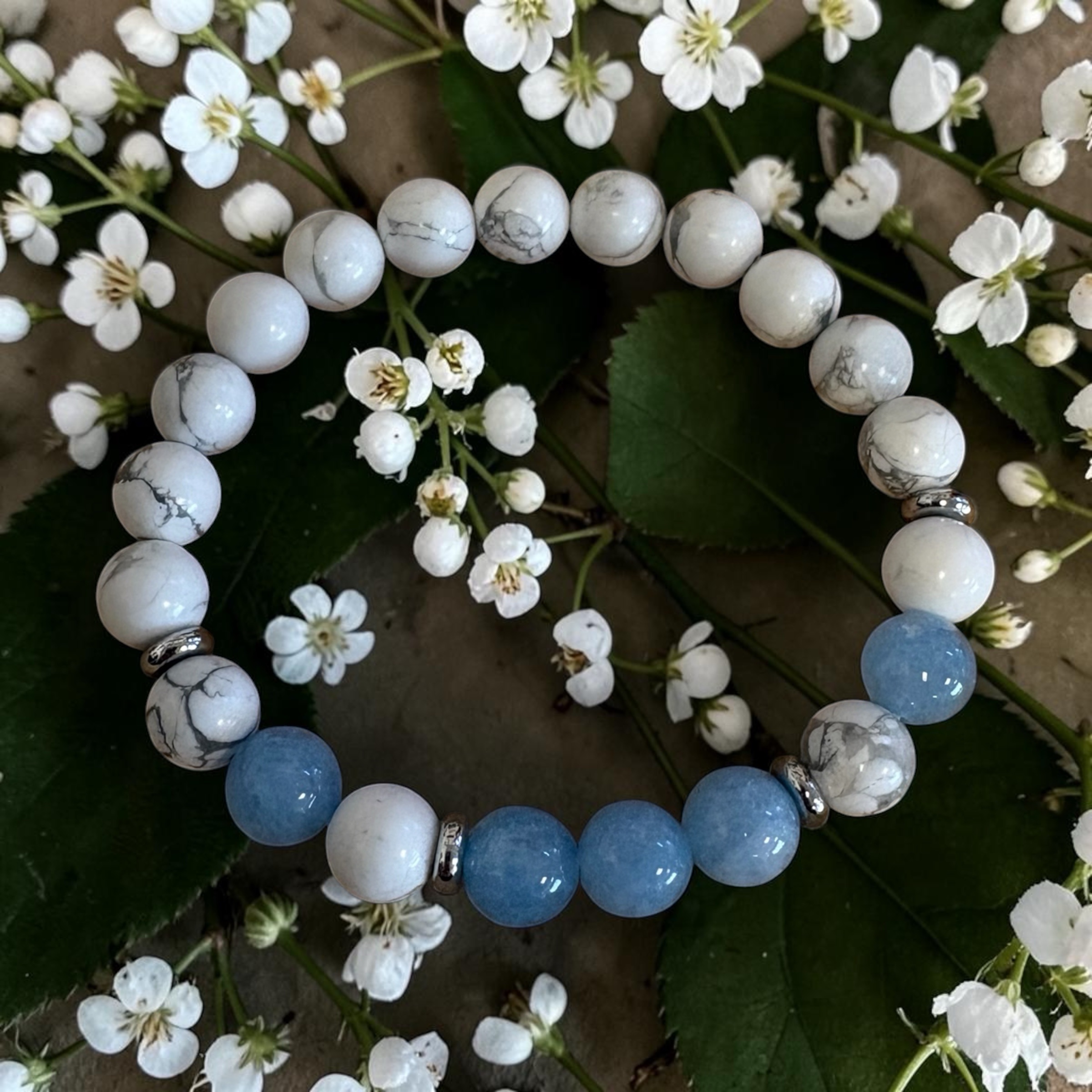 Et blidt og beroligende armbånd skabt med howlit og aquamarine – en perfekt kombination til ro, følelsesmæssig balance og indre klarhed.